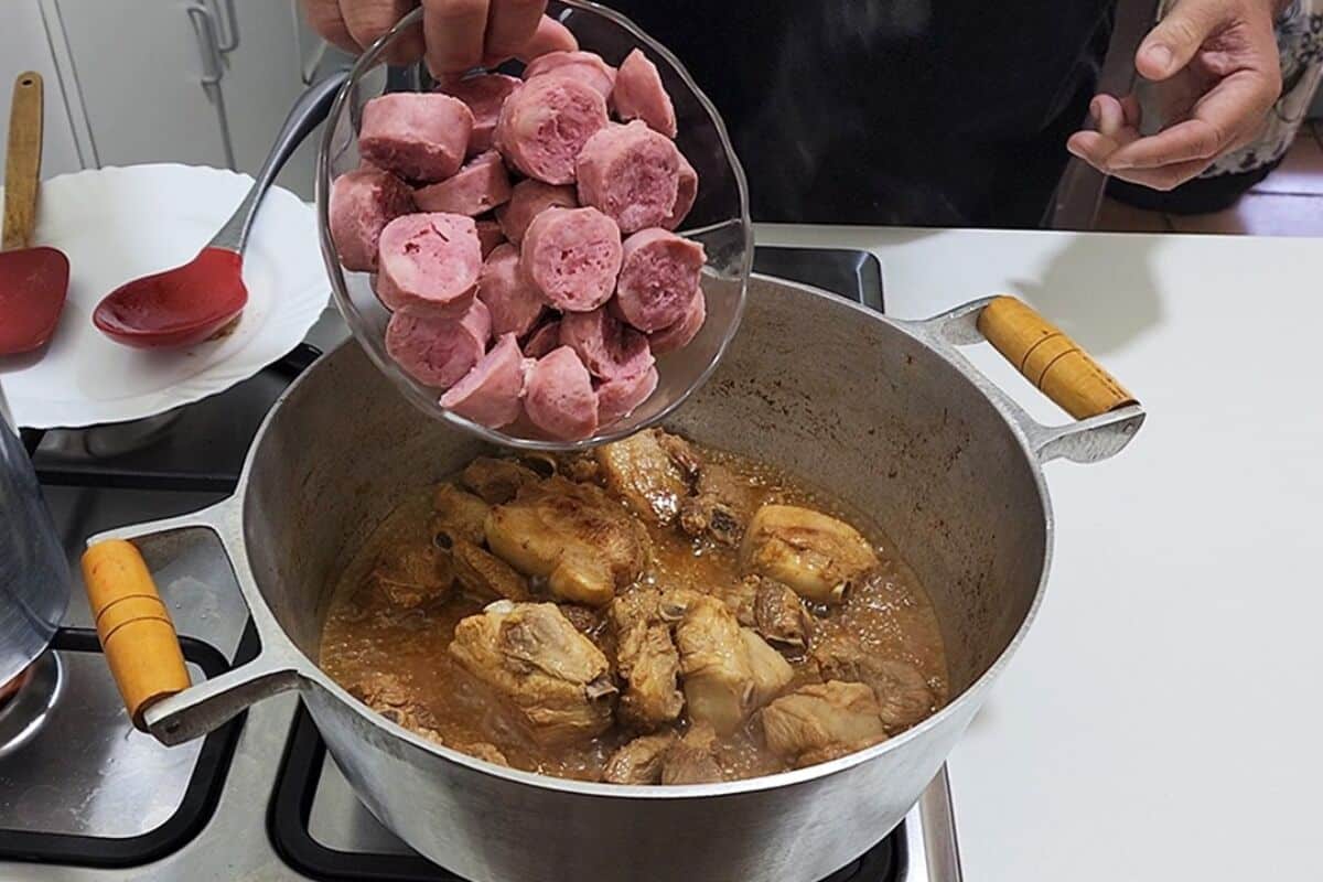- Adicione o vinagre e a linguiça, deixe fervendo por 10 minutos.