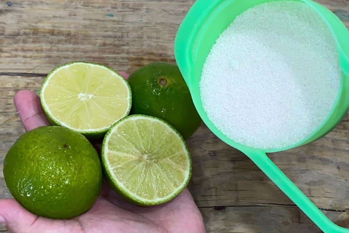 - Em uma leiteira, coloque os limões partidos ao meio, o açúcar e 1 litro de água.