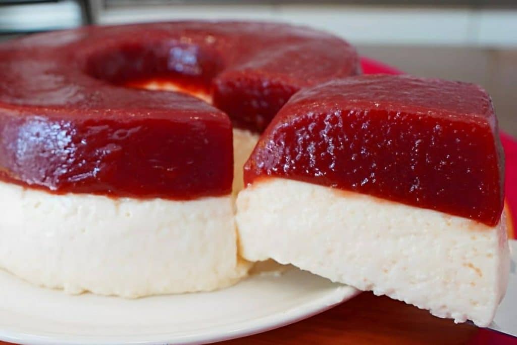 - Passe para uma forma de buraco no meio (20cm x 8cm) untada levemente com óleo e leve para gelar por 6 horas, até a goiabada ficar firme.