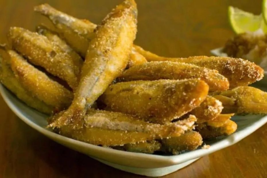 Manjuba frita com parmesão e deliciosa para servir como petisco, entrada ou acompanhamento