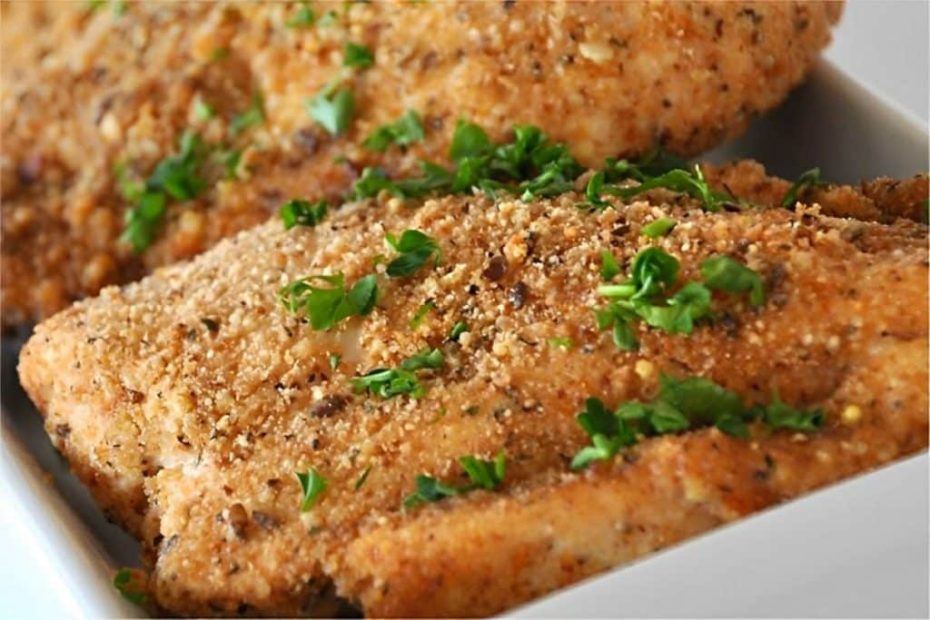 Peito de frango à milanesa feito no forno sem óleo muito gostoso e saudável