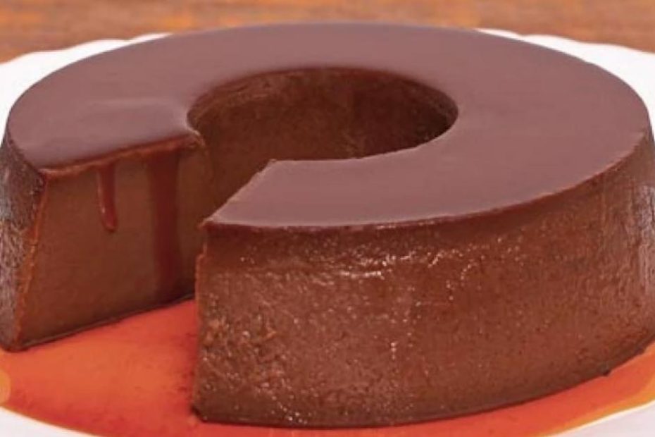 Pudim de chocolate tradicional com ovos e que vai ao forno gostoso de verdade